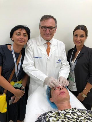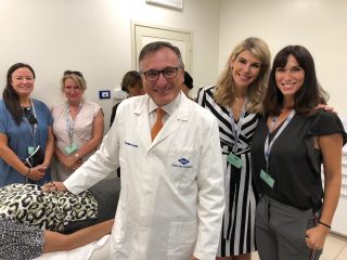 Qui sotto, una recente fotografia del dr. Cecchini presso la clinica in compagnia del nuovo team di segretarie.